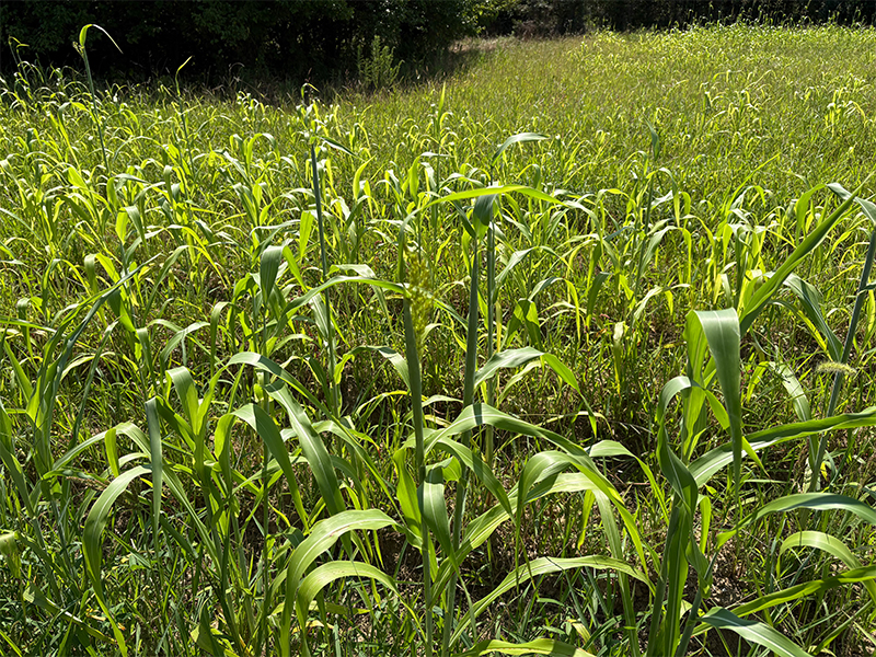 畑の東側では、多くのほうき草から穂が出ています。